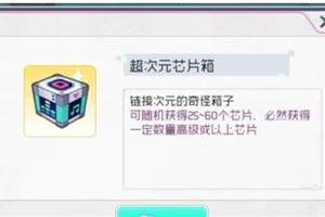 在游戏里获取芯片是在商城里购买芯片箱,目前一共有4种,价格分别是100游戏币、2000游戏币、7200游戏币、568钻石每个次元芯片箱开出来的芯片是随机的,个数也是随机的100游戏币可开出2个随机芯片
