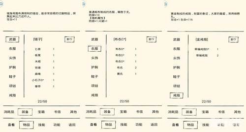 闯荡江湖,没几件趁手的兵器怎么行?另外衣服鞋子配饰什么的也都通通扔过来,增加防御效果可是多多益善的。平安镇里有一些可以免费拾取的装备,(不拿白不拿~)千万别错过了:麻绳在家里;匕首在杂货间里;手套在药店里;板凳在客栈里;锯子在仓库里;锤子在铁匠铺里;金戒指和金项链在镇长家里;蓑衣在南郊;草帽和草鞋在东郊。