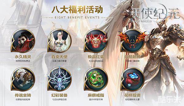 《天使纪元》公测开启的同时,还准备了八大福利活动。只需登录游戏即可获得“永久精灵”在内的豪华大礼,更有炫酷翅膀、传说坐骑、麻痹戒指等极品装备助你击败魔族,驰骋魔幻世界!