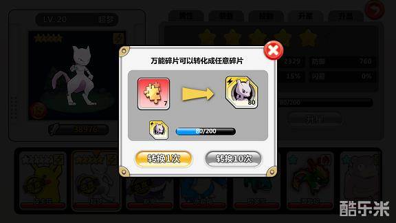 另外还有一个非常强大的道具也可以提升精灵星级,那就是万能碎片。万能碎片可以以一比一的兑换率来兑换任何一个玩家需要的精灵碎片,当然如此强大的道具获得的途径也非常的少,玩家只能通过活动、签到或者十连抽来获得。