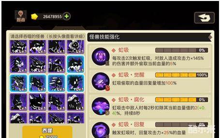 4、 技能的升级是有选择性的,大家要根据怪物本身的特性,选择性价比最高的一个或者几个技能升级。