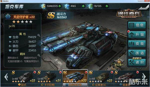 天启守护者坦克进一步优化武器系统的效能,永久提升自身活力和破击上限,初始破击提升10%以上,是战场上 真正的无敌杀手。