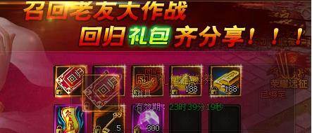 喜闻乐见,这个玩法是我们在游戏召回游戏中老友,这样可以在游戏中,我们就能够有更多的朋友,而且回归的玩家直接就可以领取海量的回归大量礼包,在这个大礼包中给我们准备了赠送卷和荣耀回归称号7天,另外回归的玩家还可以将赠送卷送给非回归玩家,赠送卷是有时效的所以要及时的赠送,我们在获取赠送卷的玩家可以在邮件中收到礼包,当然游戏中的每个角色最多只能获得一个礼包。为了让大家更直观的了解这个玩法,笔者将奖励给大家做一下详细的介绍。
