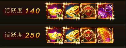 当我们获得活跃度250点的时候,绑定元宝168个、礼金168个、经验副本令牌(双击使用后,可以增加1次经验副本的副本次数)、朱雀之羽5个(光翼进化的时候必须的材料)。