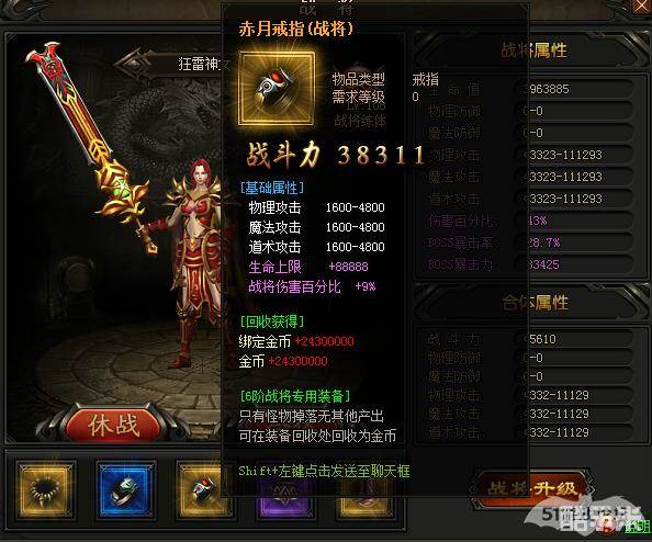 2,战将装备:通过荒古传送卷轴,有几率到达真荒古之地,击杀BOSS随机掉落。从银杏到赤月。能够给战将提供不俗的攻击