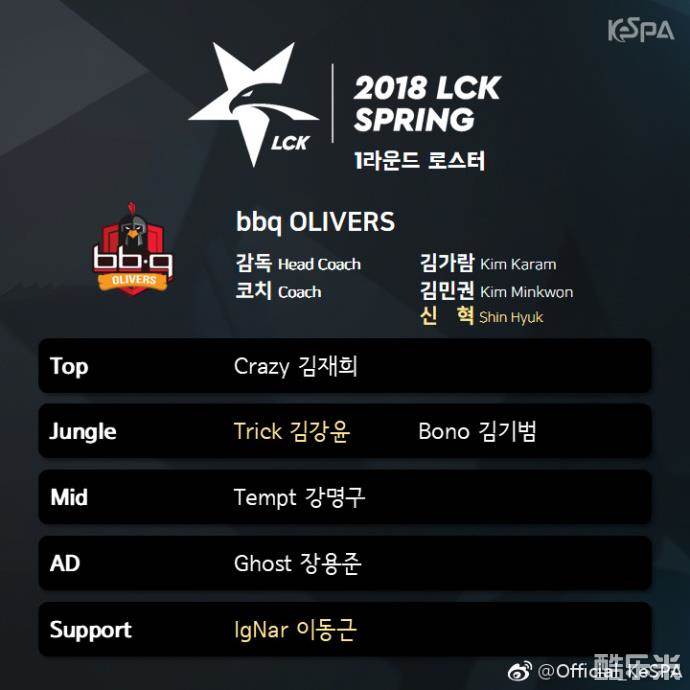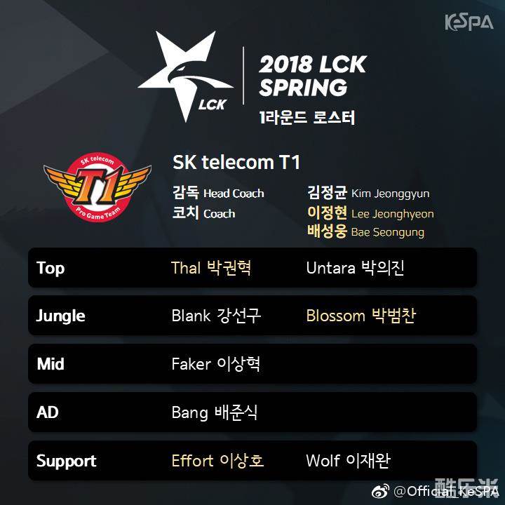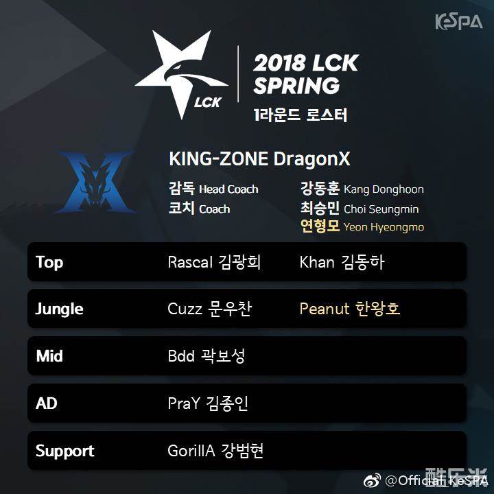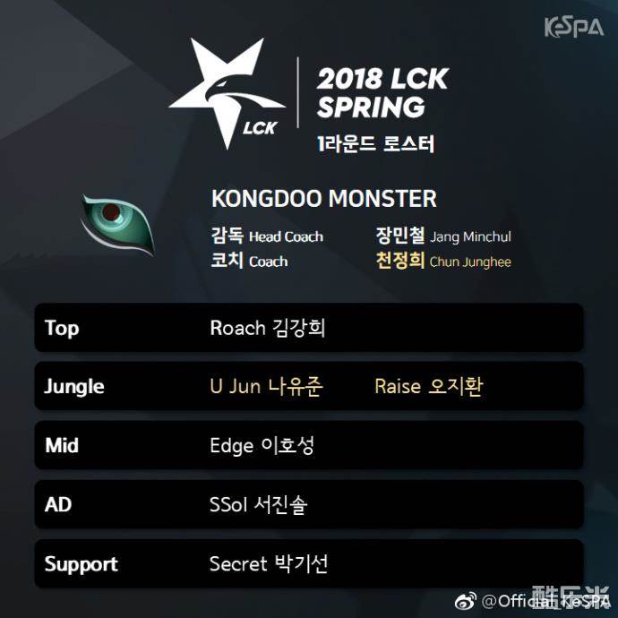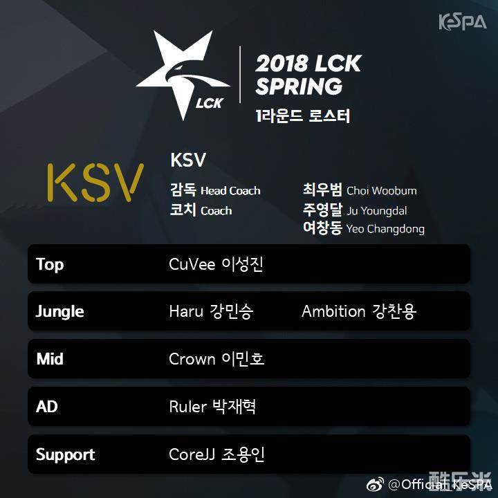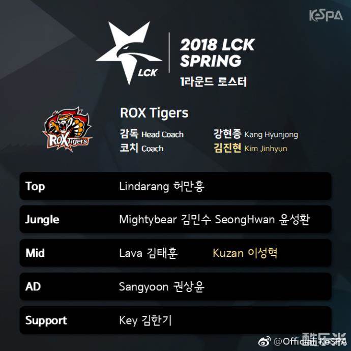 2018LCK春季赛1月16日战火重燃。完整2018LCK春季赛赛程!