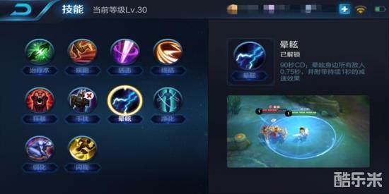 解析:晕眩效果是眩晕身边所有敌人0.75秒,并减速1秒。这个效果十分适合项羽,项羽开团一般是一技能入团抗伤害,带该技能,可以在一技能命中后接眩晕再接大招,连续团体控制敌人,为队友创造输出环境。这一招在配合打野抓人时,也是十分好用的。