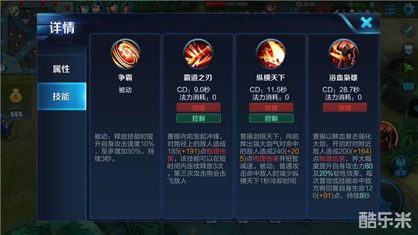 在战斗中,曹操可以先手一技能位移进场,然后释放二技能减速留人,并利用被动叠加自身的攻速,最后就可释放大招强化大剑,开启自身的“嗜血”之旅!