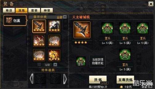 可使用普通洗炼和至尊洗炼对装备进行洗炼
