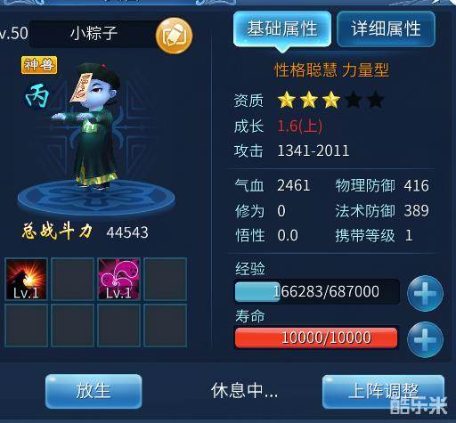 想小粽子洗练最低需求:丙级、成长1.6以上,资质两星以上;