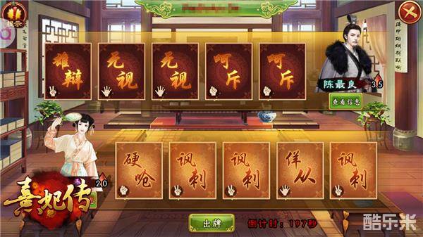 这边,在小主们的帮助下,柳梦梅三卦算毕,对梦中那位佳人更加心心念念。而梦中佳人——南安太守之女杜丽娘则与丫鬟春香共同反抗着迂腐的书堂先生陈最良。小主需要帮助春香大闹学堂,选择佯从、硬呛、讽刺三种状态牌应对陈最良,选择出牌后与对方牌结算,想要逆流而上成功闹学,运气、策略缺一不可。