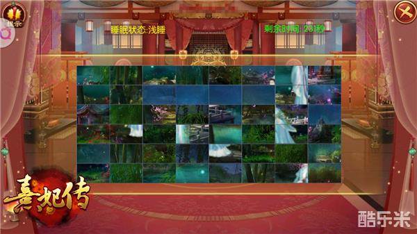 游园赏花的杜丽娘想到书堂中学习的《关雎》,心中渐生的情愫唯有寄托在梦中世界。但入梦可没有小主们想得那般容易,梦浅梦深都会影响到丽娘与书生的相聚时间。小主们需要完成小任务帮助丽娘,酣睡入梦。牡丹亭边良人立,但在梦中这幅美景却被打乱了。小主们交换美景碎片,完成拼图,才能让两人成功见面。入梦小任务都完成才能争取更多的拼图时间哦。