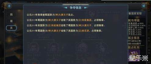 称帝大战一触即发,天下城池必将经历几度易主之痛。城主们可以在天下大势系统中查看城池争夺信息,随时掌握局势动向,方便对洛阳争夺战进行战略部署。