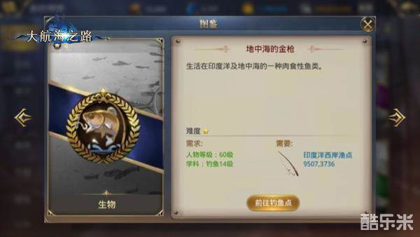 要求人物60级,钓鱼14级。