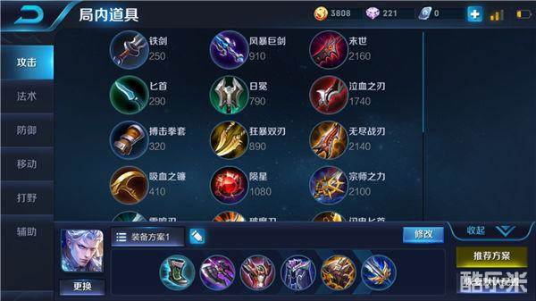分析:抵抗之靴增加法术防御、移速与韧性,提升铠的对线能力。暗影战斧提供物理攻击、冷却缩减与最大生命加成,被动-切割增加物理穿透,被动-残废能在铠普攻时,有几率降低敌人的移速。反伤刺甲增加物理攻击、物理防御,铠在受到物理伤害时,被动-荆棘会将部分伤害量以法术伤害的形式回敬给对方。魔女斗篷提升法术防御、最大生命,被动-迷雾在铠脱战后,会提供一个吸收法术伤害的护盾。不祥征兆提高物理防御、最大生命,被动-寒铁在铠受到伤害时,会减少攻击者的攻速和移速。破军提供大量的物理攻击加成,被动-破军能对生命较低的敌人造成额外的伤害,提升收割能力。