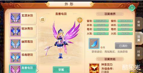 每次提升均增加人物角色 特殊属性战力,达到一定等级能解锁羽翼技能。