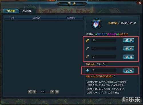 l可以通过捐献令牌、捐献非绑定钻石、参加日常活动、行会副本等途径获得个人贡献。在获得个人贡献的同时,本行会还可以获得对应的行会资金。