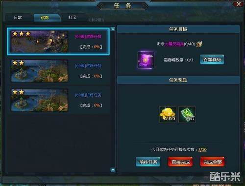 1、试炼任务为日循环任务,每天最多可完成10个试炼任务,日常任务会在次日重置完成次数。