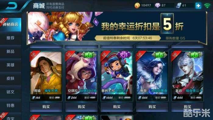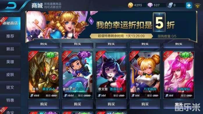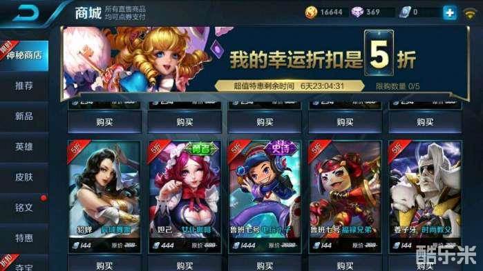 神秘商店内既有英雄也有皮肤,但物品都是随机生成的;品质越高、越稀有罕见的皮肤出现几率越小;相反,最常见的288皮肤,生成的概率也就最高。