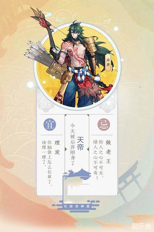 天灵灵,地灵灵,缘神附身心诚则灵!打开这款来自天庭的求签H5,输入姓名-双手摇筒-点击解签。只需简单3步,便可获知今日附身于你的是哪位大仙,今天又有何事宜忌。需要提醒各位仙友的是,一定要仔细输入姓名;诚恳的闭上双眼;认真的上下摇晃手机。如有不准,纯属姿势不正确,请再试一次!
