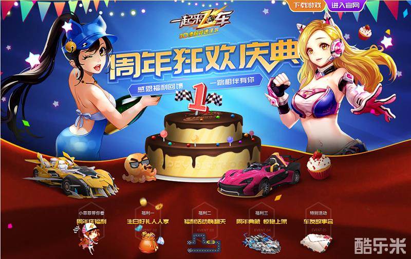 《一起来飞车》终于一岁了,对于《一起来飞车》来说,一周年是玩家陪伴的365天;对于玩家来说,一周年是《一起来飞车》和伙伴经历的365个故事。在这一年来,是所有人的关怀和陪伴激励着我们成长,在这里,我要对《一起来飞车》说一声生日快乐,对所有玩家说一声,谢谢你们!为此,官方开启史上最强周年盛典,不但有海量福利免费送出,更有国际巨星权志龙携千万豪礼助阵,快和我加入到这场生日狂欢中来吧!
