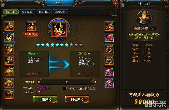 4、全身装备强化到特定等级后,会有额外属性加成。