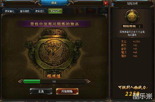 1、熔炼可以将多余的物品通过熔炼的方式获得一定的熔炼经验值。