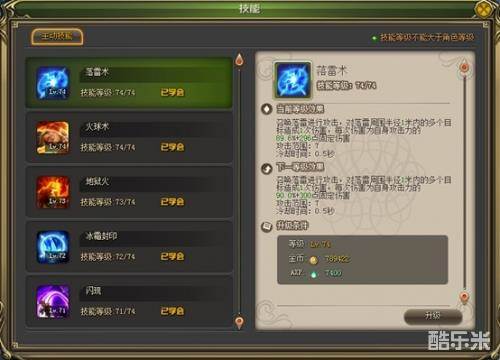 技能信息:已学习的技能会在惊天动地主界面的快捷栏中显示。选择相应的技能后,右面会显示该技能的信息,信息包括:名称、当前等级、当前等级效果、下一等级效果、升级条件、升级按键,点击后进行升级逻辑。达成相应条件后,升级成功,未达到条件则升级失败。