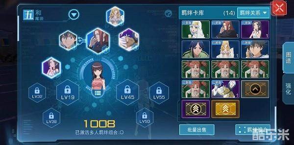 羁绊卡方面,五和优先提升攻击、防御、暴击。羁绊卡可以用紫色防御茵蒂克丝,相连的3个羁绊卡分别可以是紫色史提尔,五和,风斩。这样搭配的可以保持足够血量。另外一边可以是紫色攻击妹妹,可以连上紫色军霸,最后之作,炮姐,这样的组合使各方面输出都有保障。其余一角可以考虑蓝发耳环,土御门这种暴击和生命卡,会有不错的提升。如果有条件的话,金羁绊生命,防御,暴击,爆伤都是不错的选择。