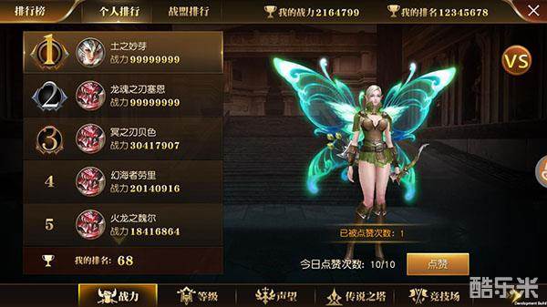 2. 个人排行包括:战力、等级、声望、传说之塔、竞技场、勇者守护、巅峰对决;