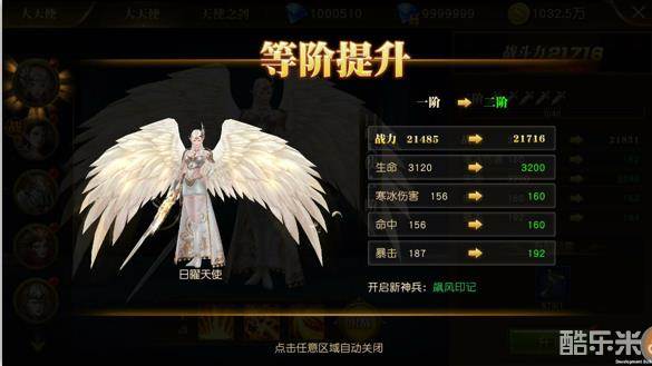 在大天使激活后可以进行升阶,升阶后的天使将获得大量的属性加成,升阶更可以激活天使之剑。