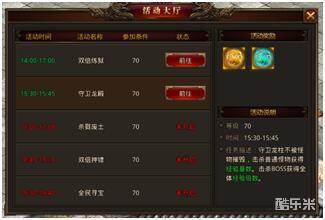 守卫龙殿,看你自身实力在里面击杀多少怪物来累计的经验活动,时间是15:30-15:45;