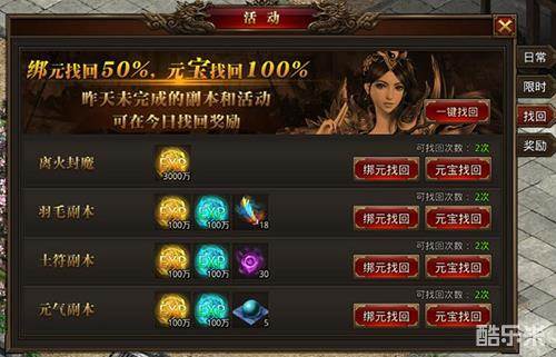 找回就不必要啦,才50%,最好还是充个元宝100%找回;
