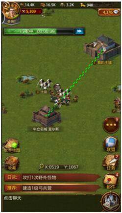 城争夺战需要玩家联合联盟成员的力量,发动集结进攻,与敌对联盟连番大战获胜之后,才能占有王城,获得国王的无上荣耀!