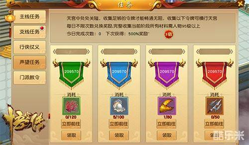 在《悟空传》手游中,主线任务无疑是所有任务的核心,其他所有任务都是基于此而构建起来的。当然,完成主线任务礼包奖励也是非常丰富的:大量的铜币、元宝和各种道具。当然,主线任务也能获得大量的经验哦。针对门派,还有独有的门派环任务,探索秘宝,打怪夺宝也是别有一番乐趣的。