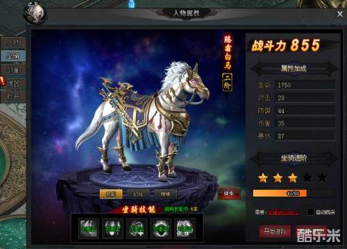 (3)坐骑进阶成功后,将获得更炫更酷的外型和更加强大的属性;