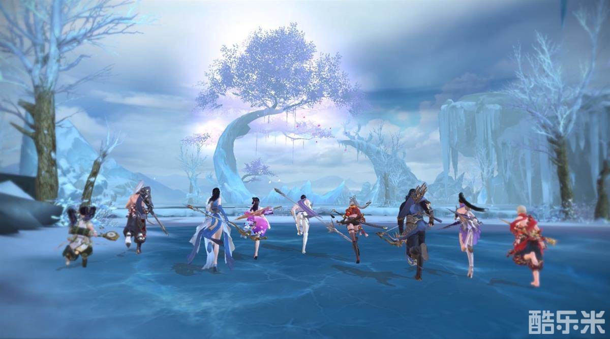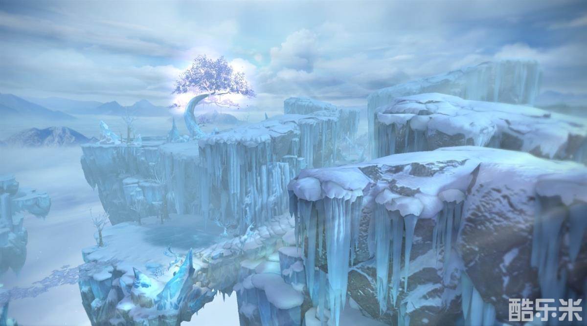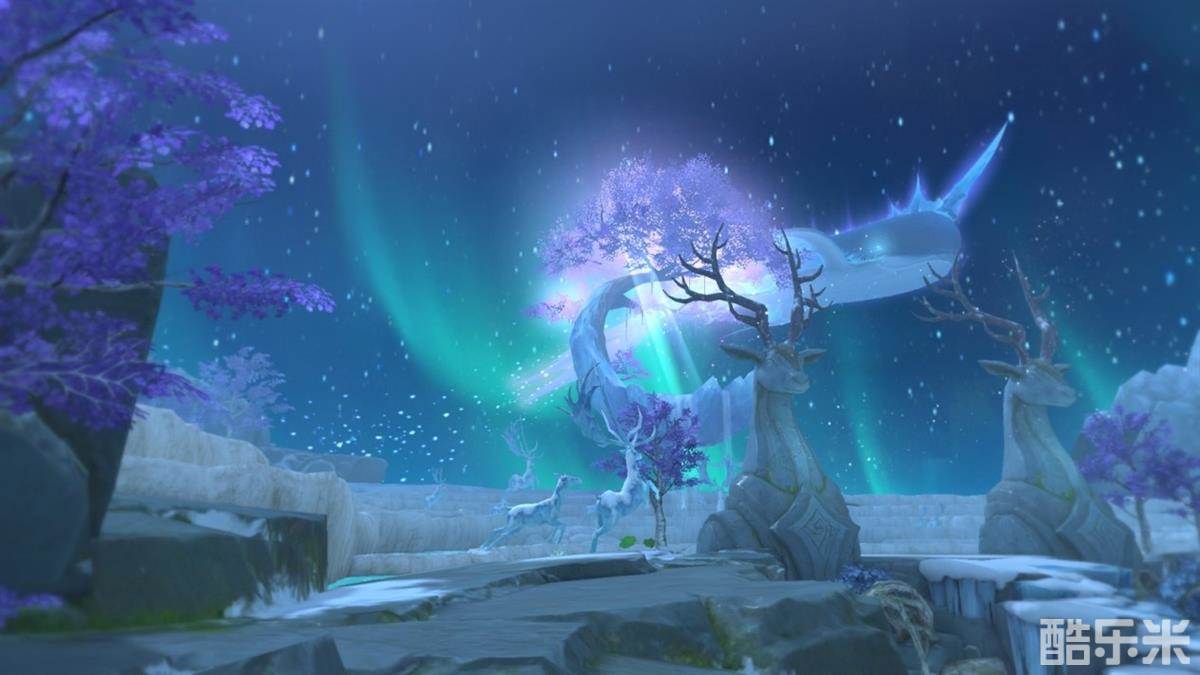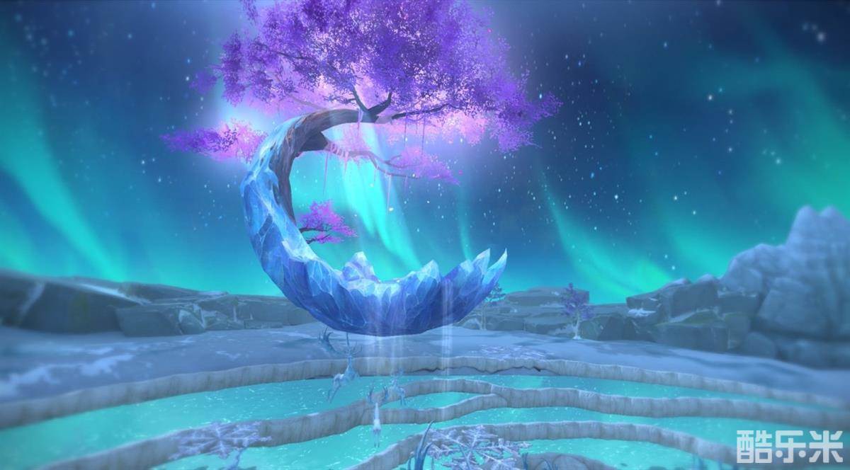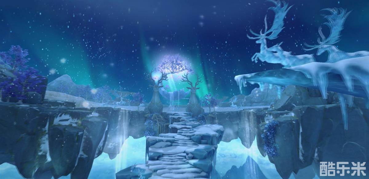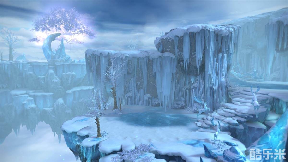震撼的视角效果之下,《镇魔曲》精心设计的众多独特地形组成了“翡翠之海”,也为它披上一层神秘的面纱。从传送点依依北望,永不封冻的温泉纵横交错,一些冰雕小鹿点缀其中、几株月树长于悬空浮岛之上,为这片冰原添加了纯白与晶莹之外的鲜艳色彩。