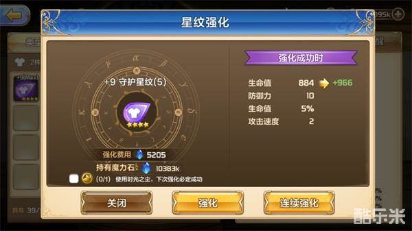 通过消耗魔力石(游戏币)的方式,玩家可以对星纹进行强化操作,强化成功,则星纹等级+1;强化失败,等级无变化。