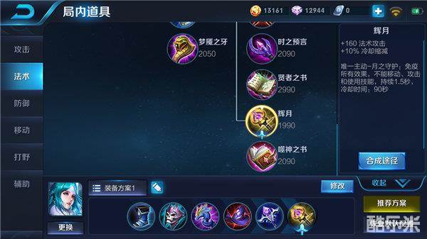 博学者之怒和虚无法杖是王昭君的核心输出装备,高额的法术强度和法术穿透使得王昭君的输出得到了质的飞跃。除此之外虚无法杖还提供了一定的最大生命,增强了王昭君的生存能力。最后一件装备推荐辉月,在游戏后期,王昭君很容易被对面爆发性英雄一套带走,辉月的主动技能能够为她提供短暂的无敌效果,大大增强了王昭君的容错率。