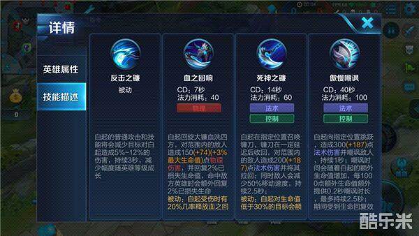 总结:总而言之,白起的综合实力是很强的,攻守兼备,机动性不俗,对于局面的把控能力同样不弱。且操作难度不高,绝对是最适合新手玩家使用的坦克英雄之一。祝大家早日上王者!