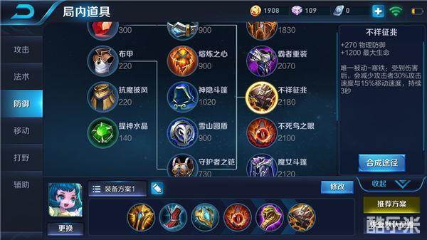 不祥征兆:这件装备有较高的物理防御和最大生命加成,被动-寒铁能降低攻击者的攻速移速。