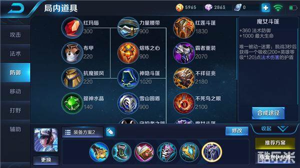 后期时,露娜需要加强自身的防御,极寒风暴提供了最大法力,物理防御和冷却缩减,被动-冰心可是能很好的限制敌方输出。魔女斗篷增加了法术防御和最大生命的同时,被动-迷雾更是提供了一个吸收法术伤害的护盾,很好的抵御了敌方的法师英雄。