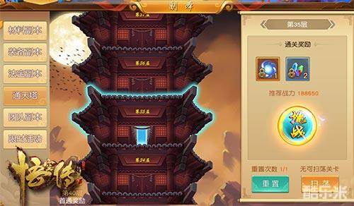 通天塔是魂晶和五彩石主要产出地,是攀塔形式的副本。通关后可以快速扫荡至当前最高层,每天还可以重置一次,是玩家快速获得魂晶和五彩石材料的重要途径。