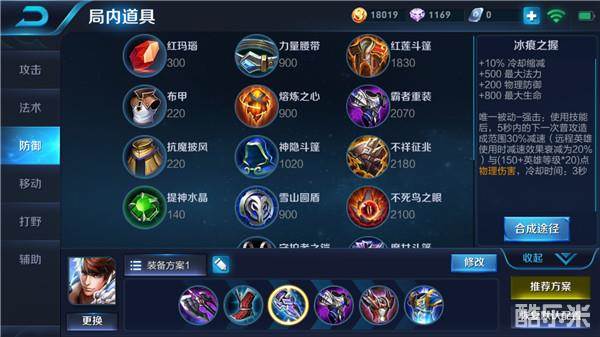 赵云核心装备推荐:暗影战斧、冰痕之握。