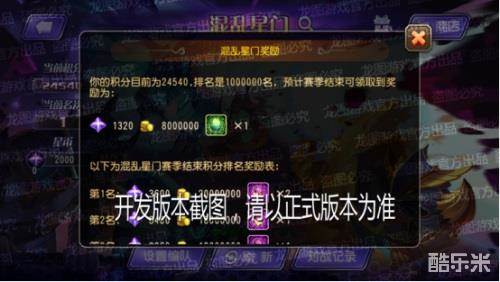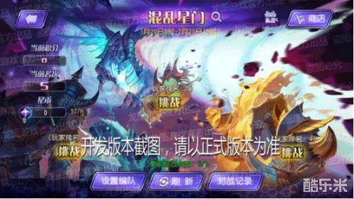 混乱星门为跨服竞技玩法,一个赛季持续一个月,每一期会让不同英雄可以上场。赛季开始时,会挑选附近区服的活跃玩家,并进入初始排名榜,名次根据本赛季可上场英雄战力总值进行排序,排名越靠前玩家可获得星币奖励越丰富。