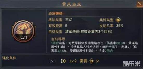 张角的自带战法【黄天当立】伤害分两段,第一段是即时伤害,第二段是持续2回合的持续伤害。