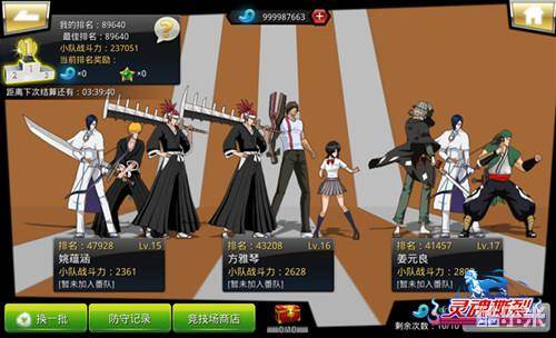 《灵魂撕裂》的竞技场是一种策略PK玩法,在3V3的组队战中,一支搭配合理的小队往往能比三个强力死神的简单组合发挥更大的威力。建队的关键在于思路明确,比如1号位伤害吸收,2号位输出,3号位辅助控制这样的安排,搭配“卍解修炼季”就能入手的市丸银、剑八这样的强力角色,就是一套合格的阵容了。