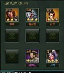 下面为大家献上我的摆法:这里说明针对非R和中R玩家。英雄选择,晕将必须的,其他的随便弄。装备速度选择,晕将必须第1速度,第2速度给主角。全部的攻击放主角身上.第1回合秒掉自己1个将,自己4英雄内息各1点。第2回合,秒掉1个将,自己3英雄内息2点,第3回合秒掉1个将,英雄3点内息。第4回合,晕出技能晕并减防,主角出技能侧击伤害550%,晕2回合,第5,6回合随便打(晕、主角各2点内息)。第7回合,晕挂掉,主角3内息。第8回合侧击出技能伤害550%!大家可以想想一共有多少伤害了,绝对比你不带晕的效果乐观!!