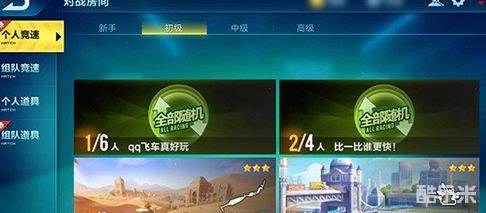 车友们进入对战房间后,可以看到“新手、初级、中级、高级,个人竞速、组队竞速、个人道具、组队道具,快速进房、创建房间、匹配对战”等选项。想要快速加入到竞速中的车友们可以点击“快速进房”及“匹配对战”。
