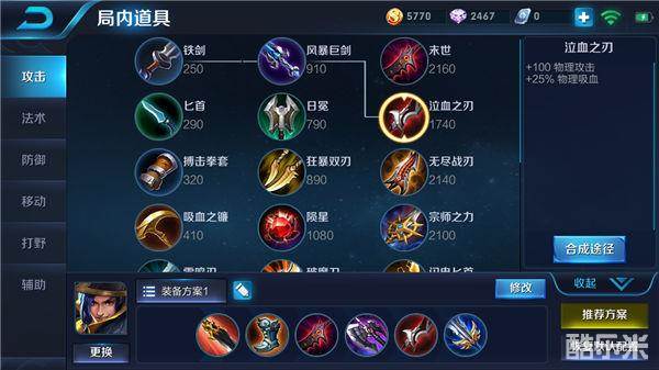 前期刘备选择打野刀出门,升级追击刀锋击杀野怪提升自己的攻速,让刘备在前期具有不错的输出能力,而急速战靴则是提升移动速度,增强刘备的游走能力,攻速提升让刘备在前期可以疯狂输出。末世提升攻速、物理攻击和物理吸血,强化刘备输出的同时,让刘备具有不错的续航性。暗影战斧提升物理攻击、血量和冷却缩减,增强刘备输出的同时被动效果可以让刘备粘着对手去打,同时物理穿透的增加也让刘备可以轻松打击坦克英雄。泣血之刃提升物理攻击和物理吸血,大幅度强化刘备的续航性。最后选择破军大幅度增强刘备的物理攻击,被动让刘备可以直接秒杀残血英雄。